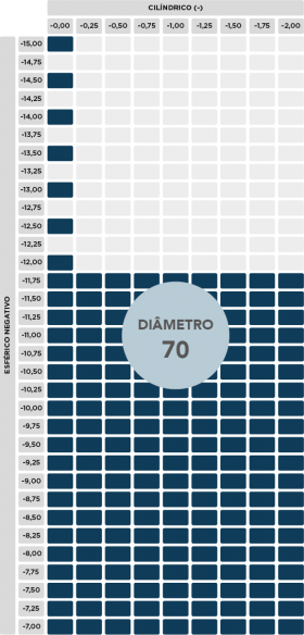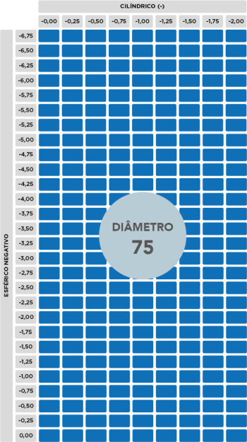 Ø65/70/75mmESF.+0.25 a +6.00 | -0.00 a -11.75 |CIL. até -2.00ESF. -12.00|-12.50|-13.00|-13.50|-14.00|-14.50|-15.00